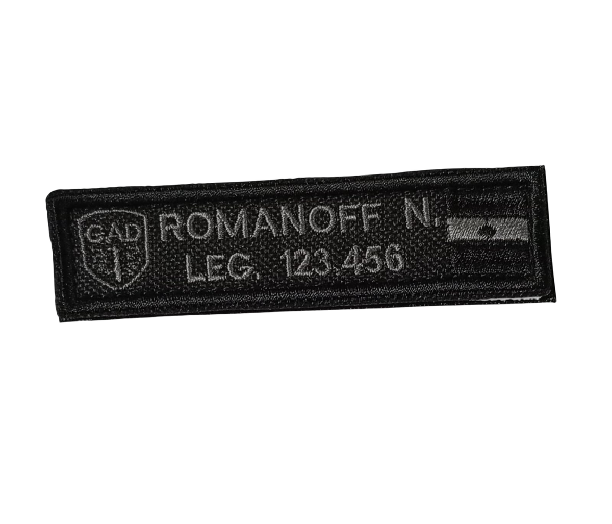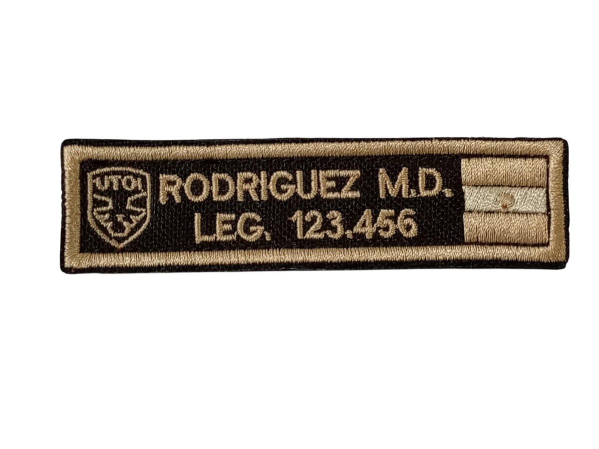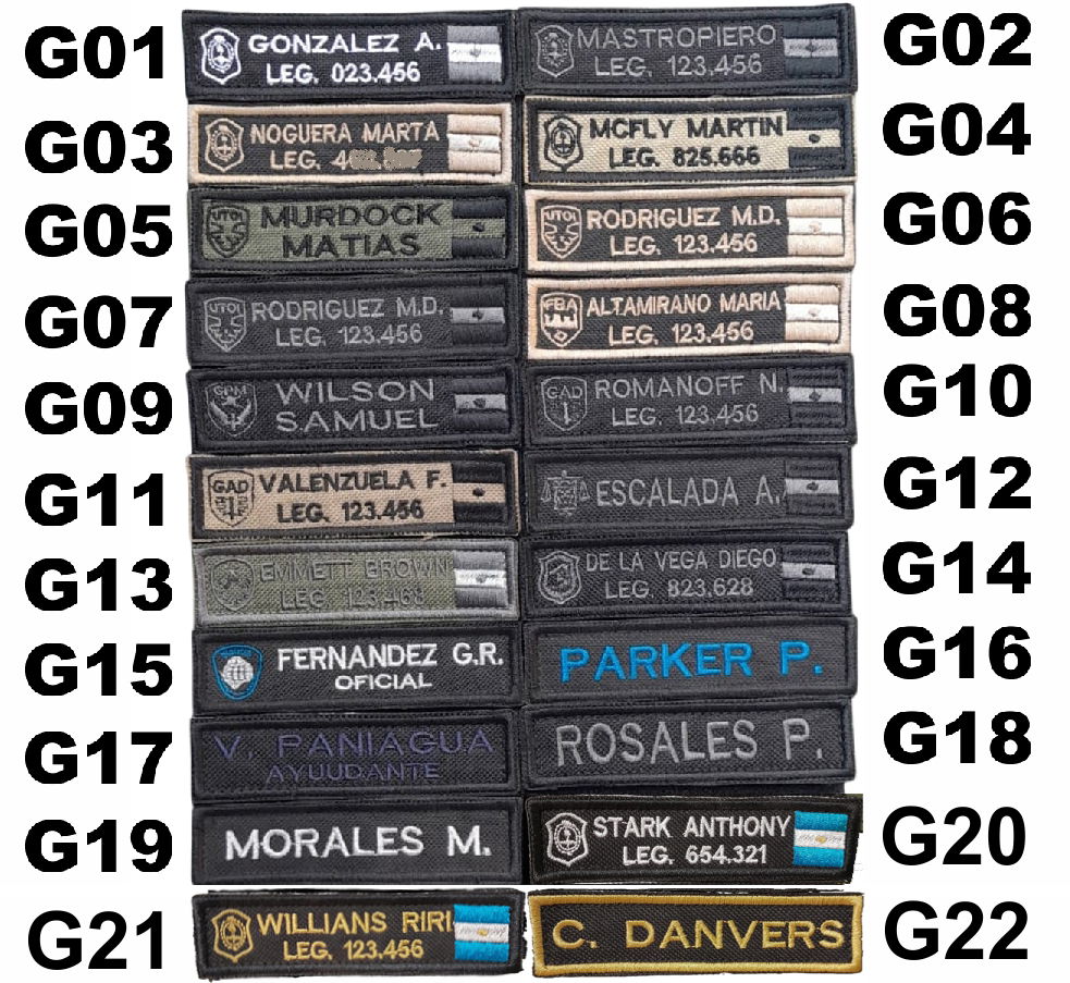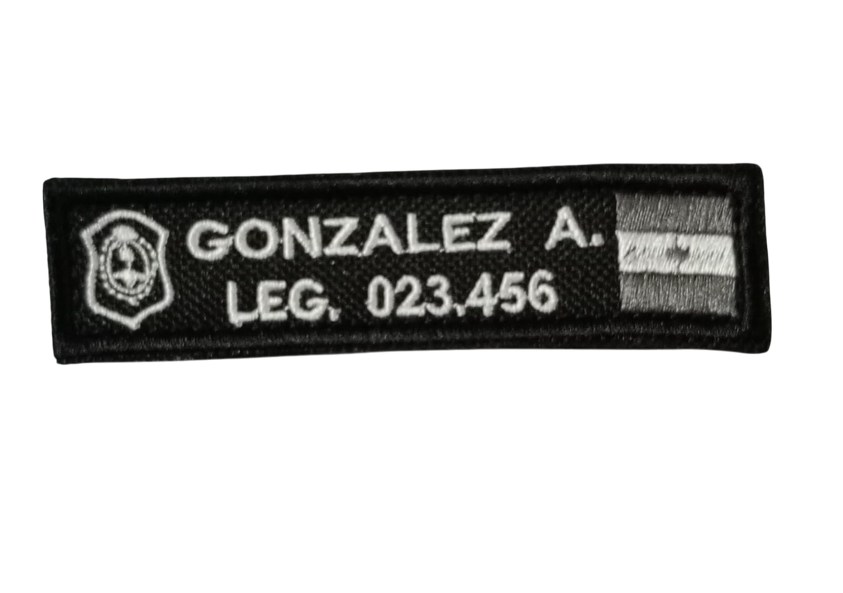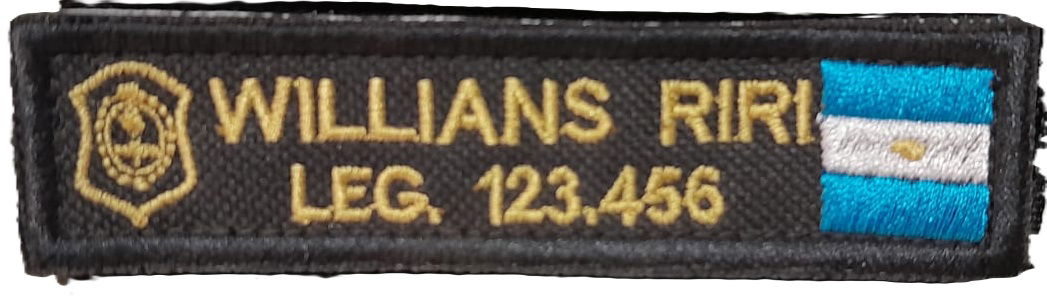 Gafete bordado x unidad con abrojo. una vez abonado la demora puede ser de hasta 10 DIAS.