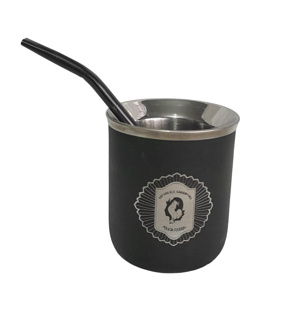 MATE DE ACERO GRABADO CON LASER. INCLUYE BOMBILLA.