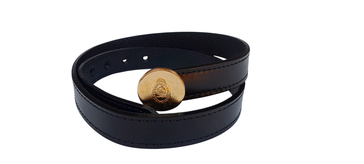 CINTO DE GALA DE 3CM PARA UNIFORME DE VERANO, CONFECCIONADO EN CUERO DE LA MAS ALTA CALIDAD, CON HEBILLA DORADA CON EL ESCUDO SPB(TORRE).