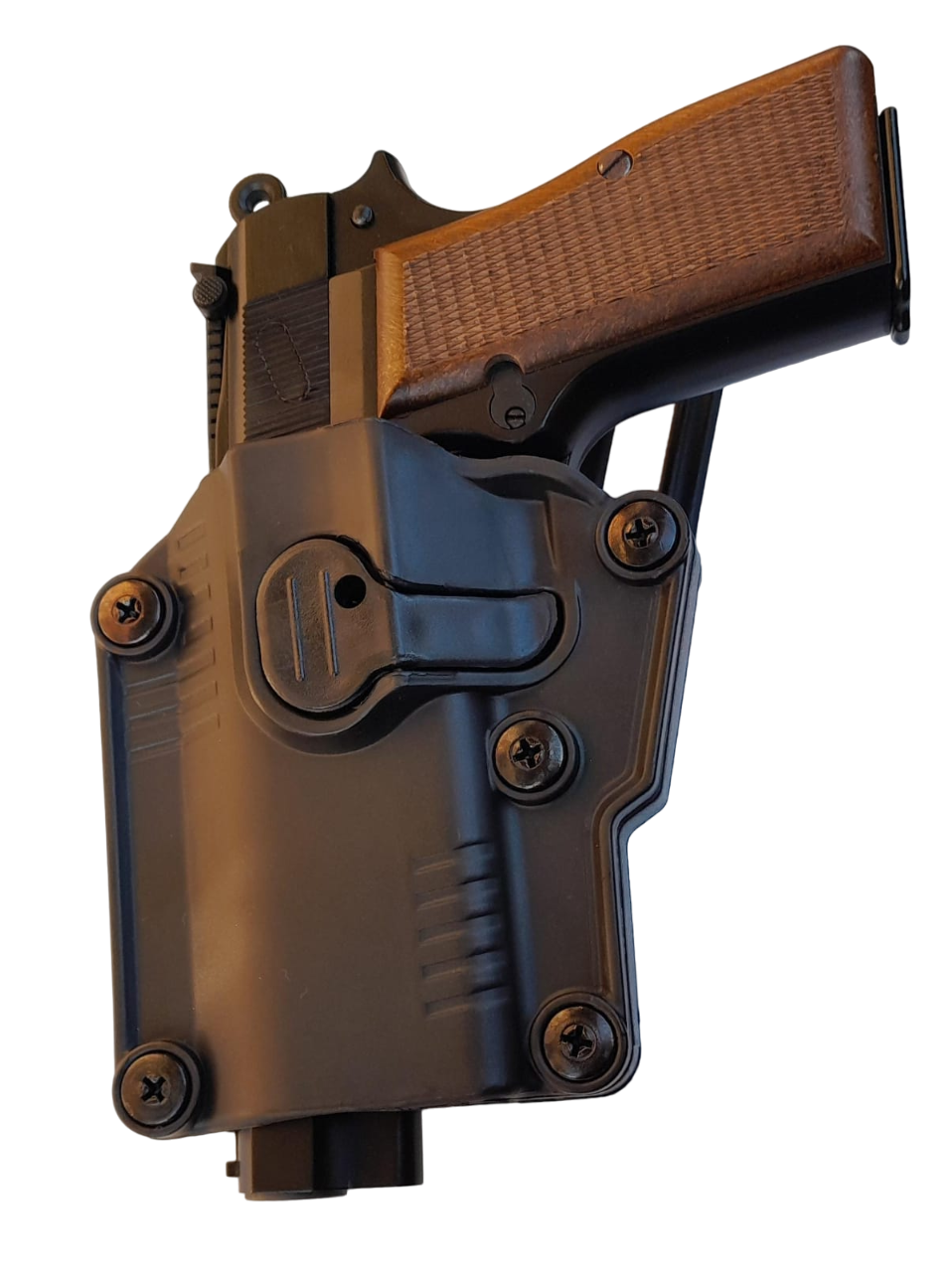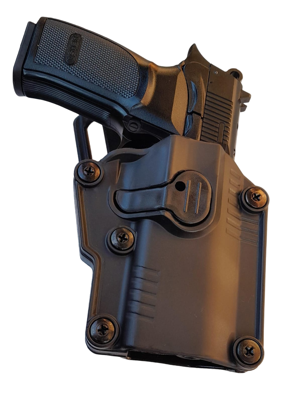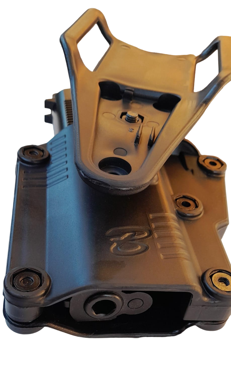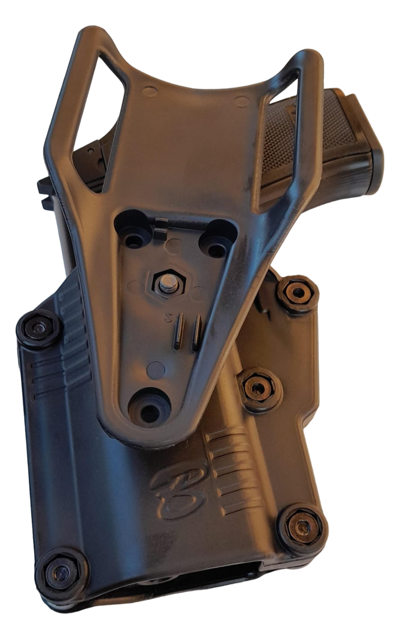 PISTOLERA DE POLIMERO NIVEL 2 DE SEGURIDAD. CON NUEVO SISTEMA PARA ADAPTAR CUALQUIER PISTOLA DE UNA FORMA MUY FACIL CON UN DESTORNILLADOR PHILLIPS. [ESTE MODELO YA VIENE AJUSTADO PARA BERSA TPR/ THUNDER PRO]